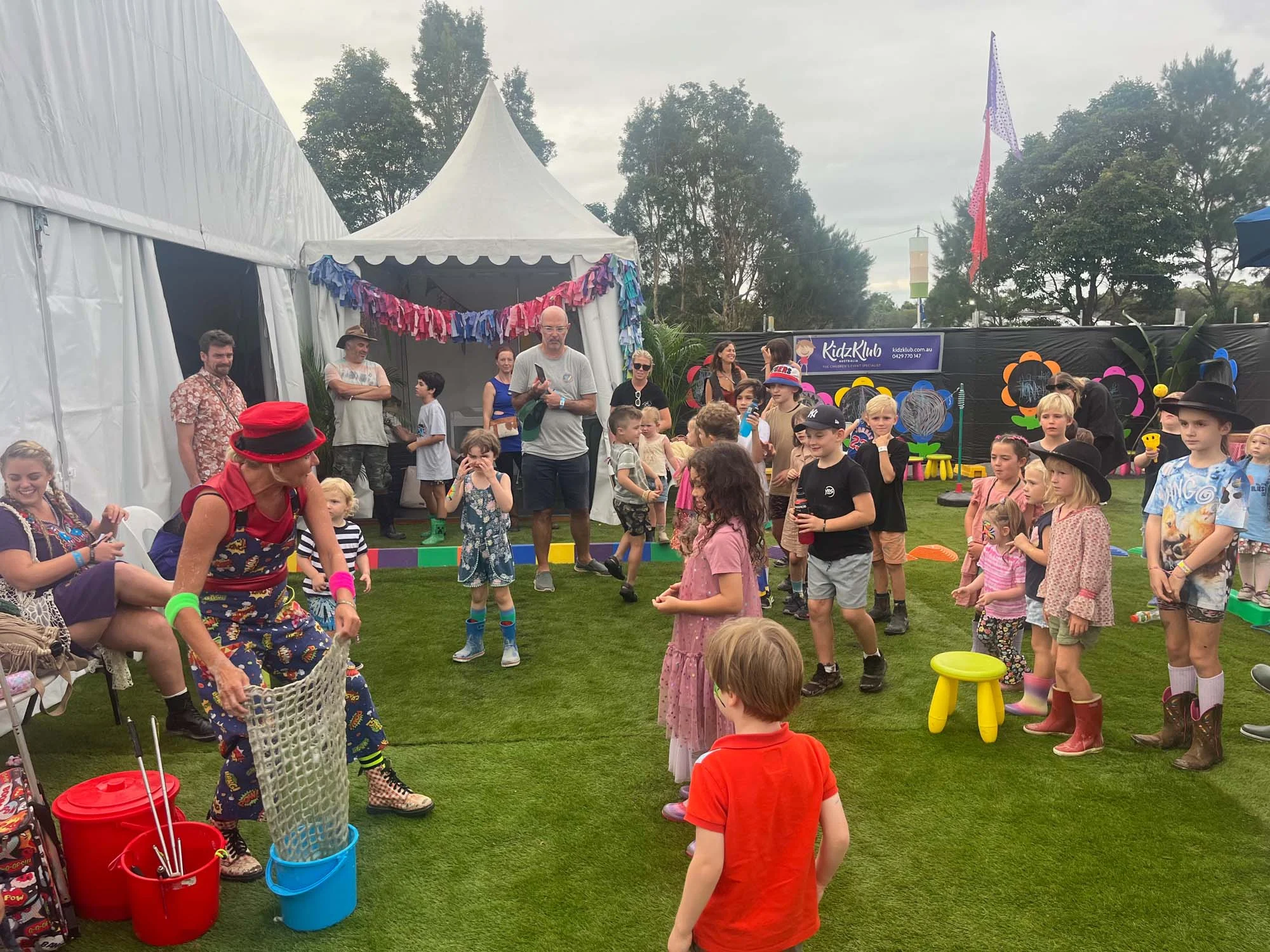 At Bluesfest, Kidzklub delivered a full-scale Classic Kids Club setup, complete with themed art stations, physical play zones, dress-ups and a chillout area — all under the supervision of our professional play facilitators.