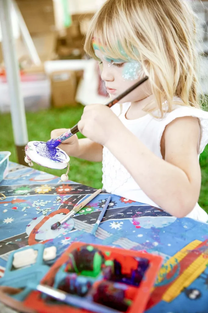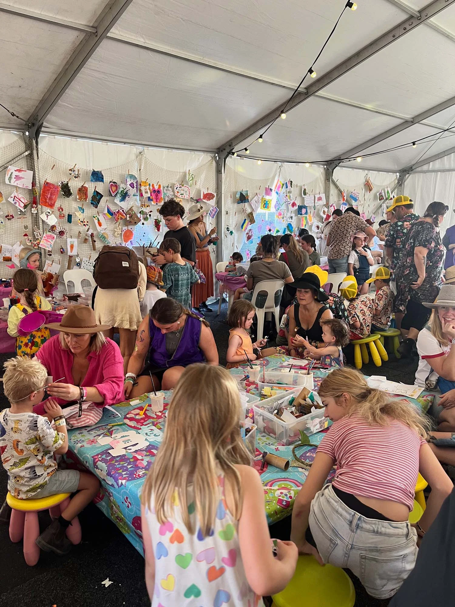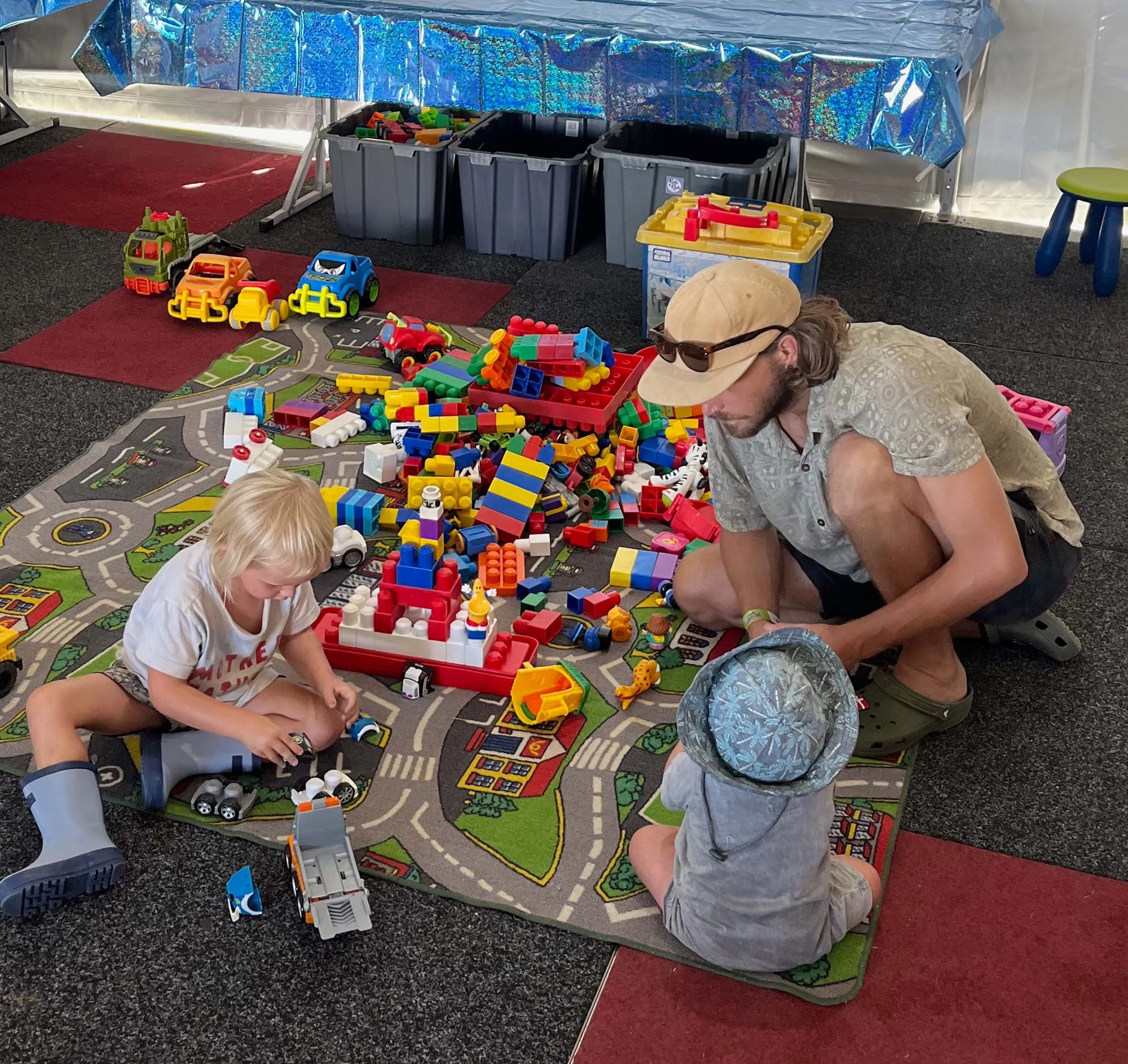 A calm, shaded retreat filled with toys, cars, building blocks and construction games. This zone gave younger children a space to relax or quietly play after an active day of creativity and fun.